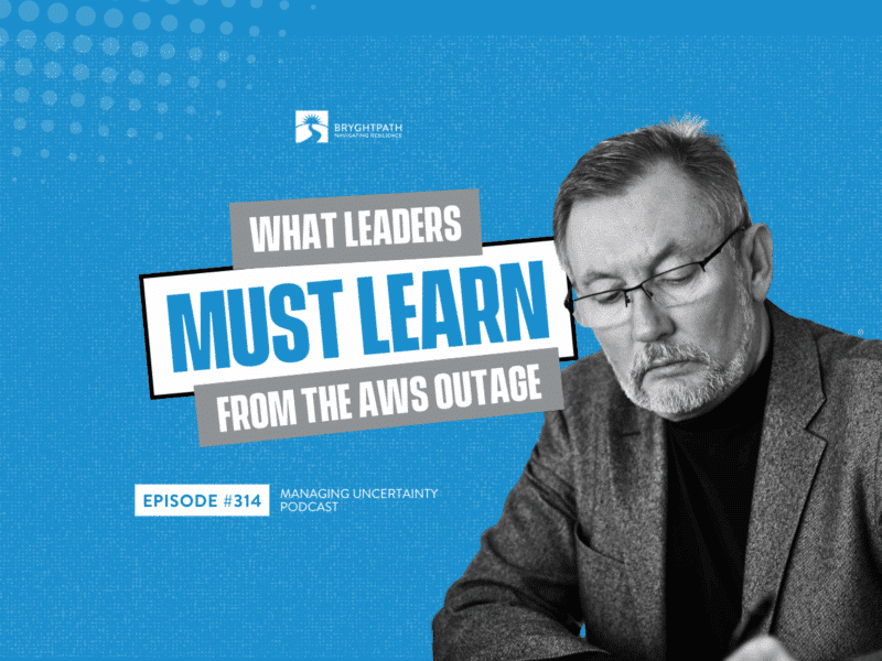 In this episode of the Managing Uncertainty Podcast, Bryghtpath Principal & Chief Executive Bryan Strawser explores the operational, reputational, and strategic risks organizations face when a major cloud provider like AWS experiences an outage. Bryan breaks down why most companies are underprepared for large-scale cloud disruptions and what executive leaders must do differently to ensure continuity. He also outlines how cloud dependency should be treated as an enterprise risk—one that deserves board-level attention and investment.