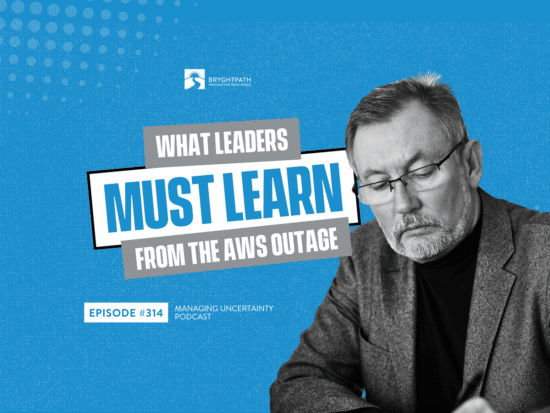 In this episode of the Managing Uncertainty Podcast, Bryghtpath Principal & Chief Executive Bryan Strawser explores the operational, reputational, and strategic risks organizations face when a major cloud provider like AWS experiences an outage. Bryan breaks down why most companies are underprepared for large-scale cloud disruptions and what executive leaders must do differently to ensure continuity. He also outlines how cloud dependency should be treated as an enterprise risk—one that deserves board-level attention and investment.